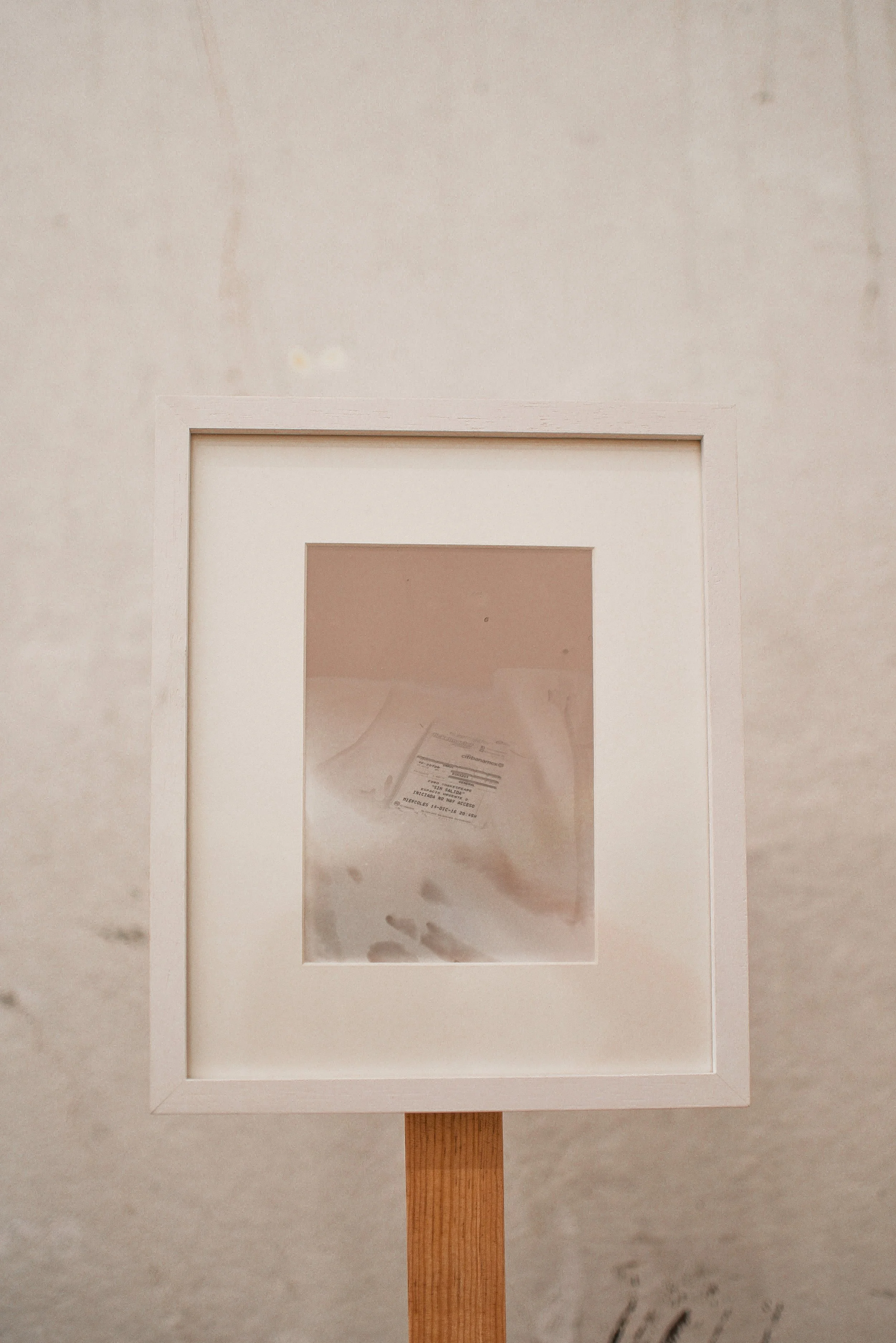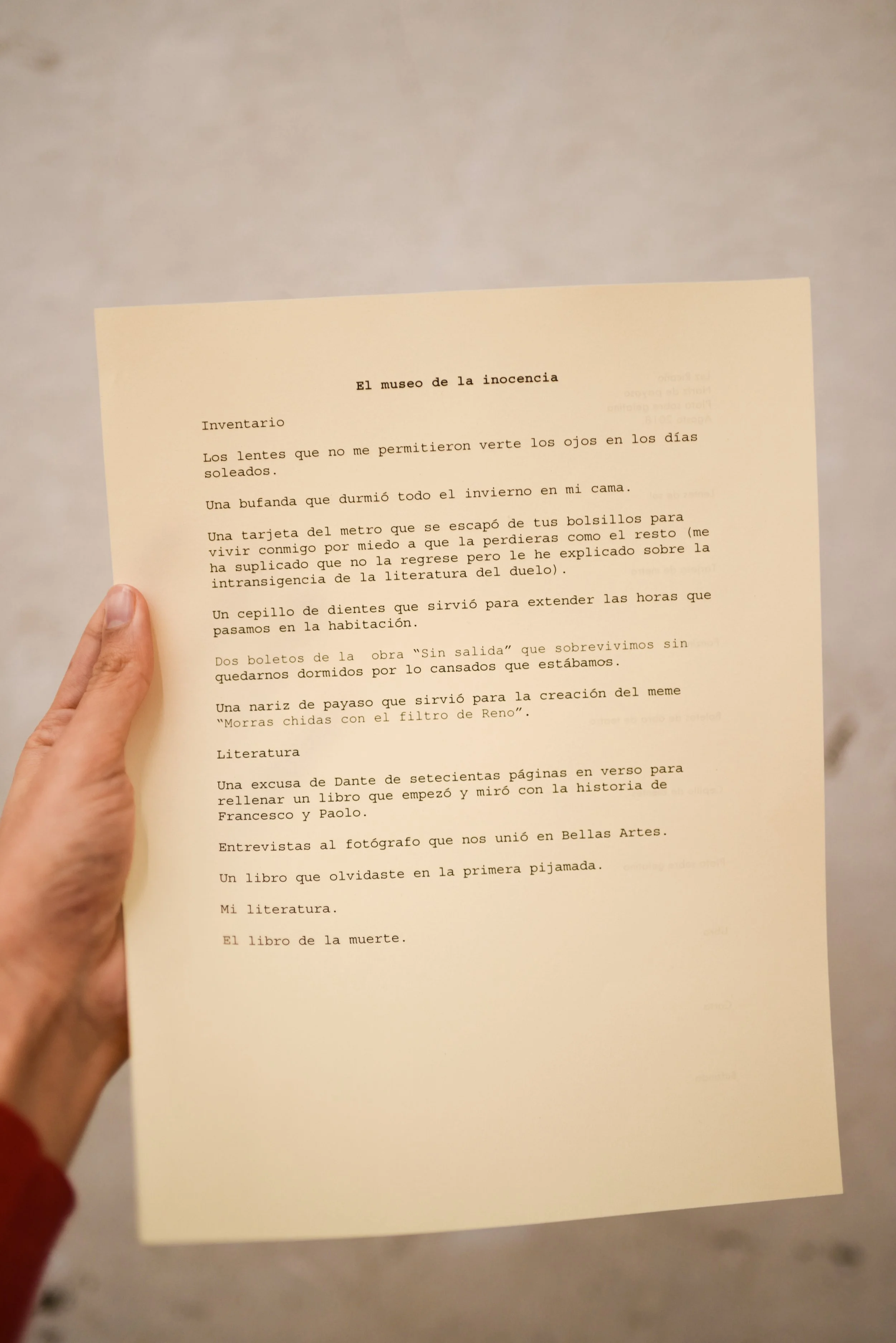 He aquí el reto: ¿cómo fotografiar —y representar— un objeto que ya no es lo que era, y que aún no sabemos lo que será? Los objetos seleccionados —un libro, una tarjeta del metro, unos lentes— ya no son parte de la parafernalia de una relación amorosa, sino de un recuerdo. En el proceso del revelado no apliqué el líquido fijador que hace que la imagen permanezca en el papel. El resultado es que, con el tiempo y la exposición a la luz, las imágenes van desapareciendo, acelerando el proceso del olvido, pero también del recuerdo.